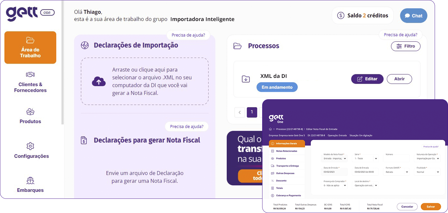 Gett One é um sistema pay-per-use especializado para emitir NF-e de importação de mercadorias